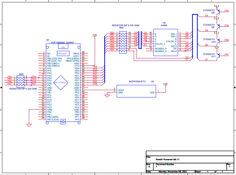 - Created an embedded system that utilized an external temperature sensor and the built-in ADC in the AVR128DB48 to measure and display the temperature on a seven-segment display